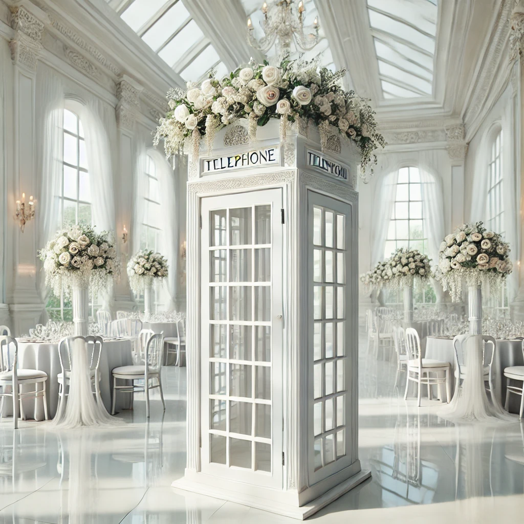 Unsere weißen Telefonzellen sind aufwendig restaurierte Unikate, die mit viel Liebe zum Detail gefertigt wurden. Sie sind ein stilvoller Blickfang für jede Hochzeit und verleihen eurer Feier eine ganz besondere Eleganz.